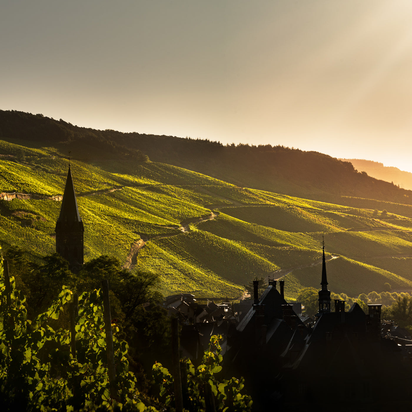 Die Lage an der Mosel ist einzigartig und prägt die Weine von Schloss Lieser maßgeblich. Die steilen Schieferhänge bieten optimale Bedingungen für den Anbau der Riesling-Traube, die hier zu ihrer vollen Pracht heranreift. Die mineralischen Böden und das kühle Klima verleihen den Weinen eine unverwechselbare Frische, lebendige Säure und feine Aromen.